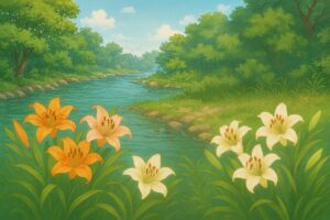 比売の家は佐韋河(さいがわ)のほとりにあり、河原には山百合が咲き誇っていました。山百合の元の名は佐韋と言います。