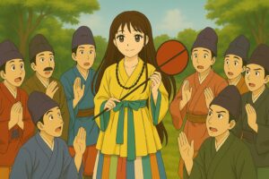 「もしお前がこの乙女を娶ることができたら、俺の着物をやろう。さらに身の丈ほどの大甕に酒を満たし、山や川の珍しいご馳走をことごとく揃えてもてなしてやろう。ただし失敗したなら、同じことをお前が私にするのだぞ」