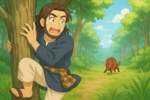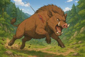 天皇はすかさず鏑矢をつがえ、狙い違わず放たれました。矢は見事に猪を射抜きましたが、傷を負った猪は怒り狂い、唸り声を上げながら大口を開けて天皇へと突進してきました。