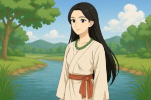 雄略天皇が吉野の宮においでになった折、吉野川のほとりに一人の美しい乙女がいました。