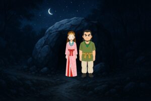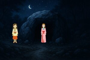 こうして天照大御神がお姿を現されると、世界は再び光に満ち、昼が戻ってきました。