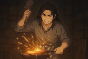 さらに天堅石(あめのかたしわ)と天金山(あめのかなやま)の鉄を取り寄せ、鍛冶神の天津麻羅(あまつまら)に鉄を鍛えさせました。
