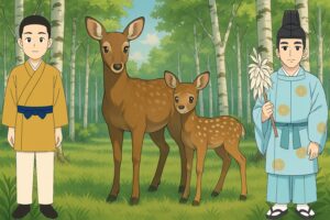 • 天の香山眞男鹿の肩を内拔きに拔きて(香具山の鹿の肩の骨をそっくり拔いて)