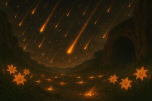 どこもかしこも昼と夜の区別がない、終わりのない暗黒の世界となり、その隙を突いて悪しき神々が騒ぎ立て、天地には災いが満ちあふれました。