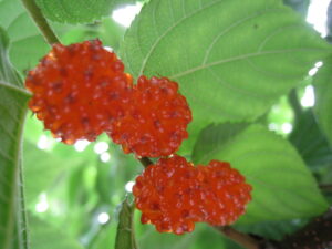古来、楮の樹皮から繊維を採って糸や布を作っていました。麻を白和幣(にぎて)、楮を青和幣と呼びます。