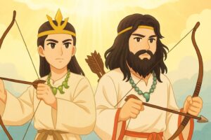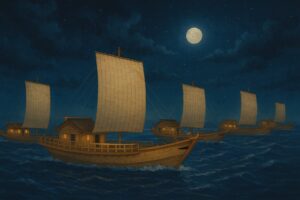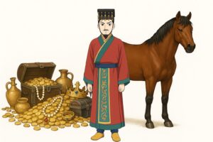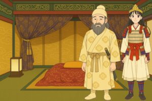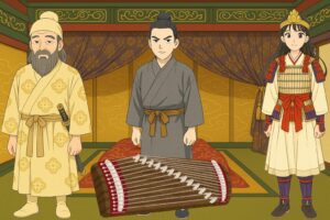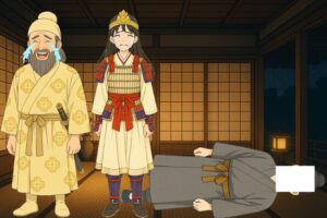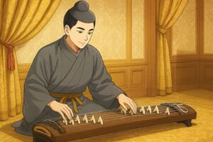 建内宿禰は慌てて「恐れ多いことです、陛下、どうか琴をお弾きください」と諫め、天皇はしぶしぶ再び弾かれましたが、まもなく琴の音は途絶え、灯を点してみると、天皇はすでに崩御されていたのです。