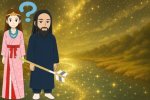 ところがその矢は雉を貫き、そのまま大空の天安河原にいた天照大御神と高御産巣日神のもとへ届きました。