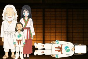 天若日子の父・天津国玉神と正妻、御子らはその声を聞き、下界に降りて葬儀を営みました。