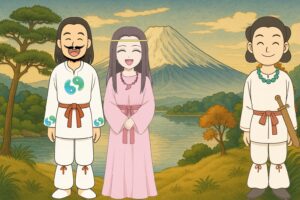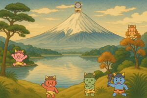 そこで、忍穂耳命は天から降りようとして、念の為、天浮橋から見下ろしてみると、下界では荒ぶる神々が好き勝手に暴れ回り、国は混乱のさなかにありました。