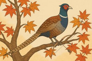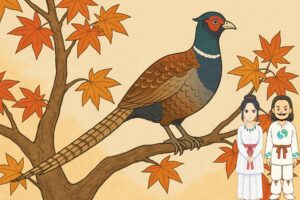 雉は下界に降り、天若日子の屋敷の門の楓の木の上にとまって言いました。