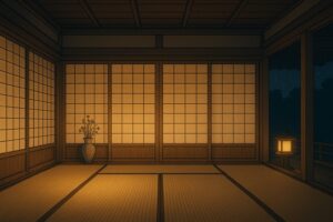 当時の葬儀は、お屋敷とは別に喪屋(もや)を造り、連日、穢れを祓うために舞い踊る風習がありました。