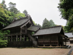 島根県松江市大庭町の神魂神社(かもすじんじゃ)は、天菩比神が創建したとされています。本殿は現存する日本最古の大社造りで国宝です。