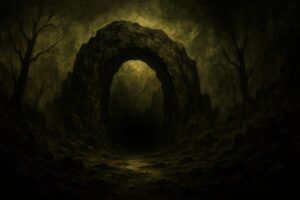 どうしても妻に再び会いたいと願った伊邪那岐命は、ついに意を決して、死者の国、暗黒の黄泉(よみ)の国へと後を追われたのです。