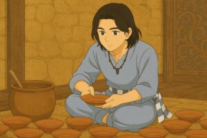 さらに、伊迦賀色許男命(いかがしこおのみこと)に命じて、祭祀に用いる器をたくさん作らせ、天つ神から国つ神に至るまでが、ことごとくお供え物を奉られました。