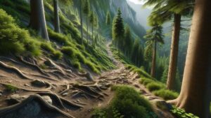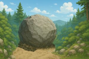 大国主命は、このままぐずぐずしていると危ないと考え、須佐之男命の長い髪を四方の垂木に結びつけ、戸口を五百引(いほびきのいわ)の石という巨大な大岩で塞ぎました。