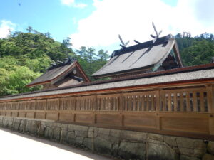 宇迦の山とは現在の出雲大社の背後に位置する山脈一帯。神体山とされており、神聖な禁足地として古来から入山が禁じられています。「宇迦」とは穀物を意味する古語だとされています。