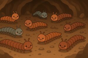 困る大国主命に、須勢理比売が椋の実と赤土を渡して助けます。大国主命は椋の実を噛み砕き、赤土を混ぜて吐き出し、ムカデを噛み砕いたように見せかけました。