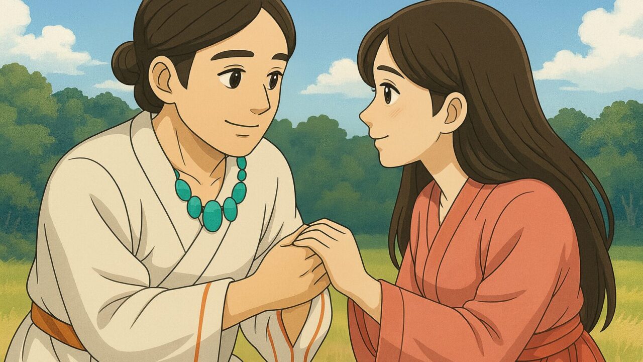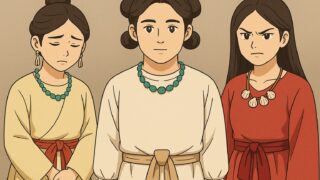 ところが須勢理比売は、ひそかに領巾(ひれ)を大国主命に渡し、「もし蛇が襲ってきたら、この領巾を三度振って払いなさい」と教えました。