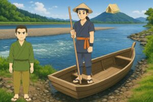 川を渡る途中、大山守命は船頭に扮した和紀郎子に問いかけました。