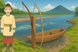 そして和紀郎子自身は、身分の低い船頭に身をやつして棹を握り、大山守命を船上で待ち受けました。