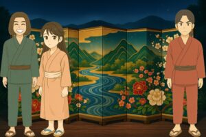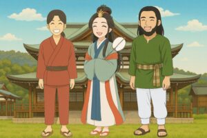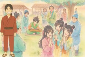 ある時、弟の袁祁王は「歌垣」という若い男女が集まって歌を掛け合い、縁を結ぶイベントにお出かけになりました。