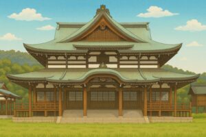 「お宮の小さな出っ張りは、隅が傾いている」
