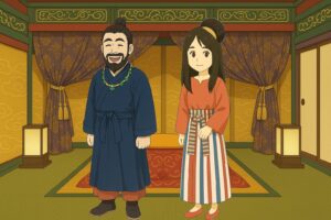 天皇が「では、俺の衣の紐は誰が結ぶのか」と問うと、皇后は「丹波比古多多須美知能宇斯王(たにはのひこたたすみちのうしのおう)の娘、兄比売(えひめ)と弟比売(おとひめ)の姉妹をお召しください」と答えました。