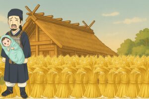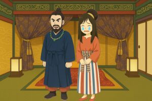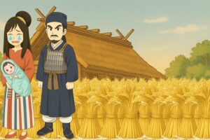 天皇は「髪も緒も衣も頼りとならぬ」と嘆き、玉の腕輪を作った玉作部を罰して領地を没収しました。