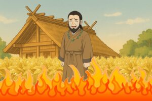 やがて天皇は軍を進め、ついに沙本毘古王を討ち果たしました。皇后もまた、炎立つ砦に身を投じて果てられました。