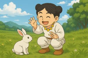 兎は言われた通りにし、たちまち元の白い毛を取り戻しました。