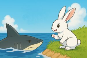 「私は隠岐の島におりましたが、この本土へ渡りたくて仕方がありませんでした。そこで海の鮫をだまして、『おまえと私と、どちらの一族が多いか競べよう。おまえはこの島から気多の岬まで一族を並べてみろ。私がその背を踏んで数えてやろう』と言いました。
