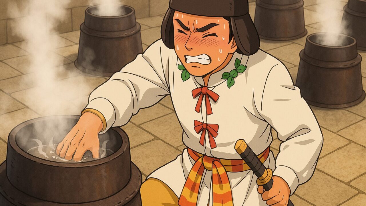 正直に本当の氏を述べた者は、鍋の中の泥を探っても無事でしたが、虚偽を申し立てた者は、たちまちその手が焼けただれたと伝えられています。