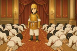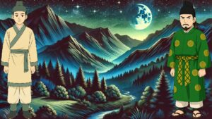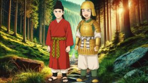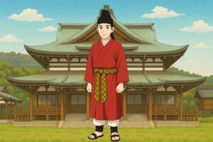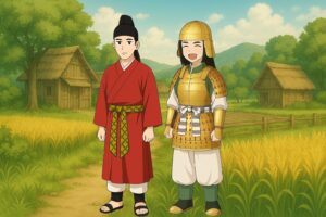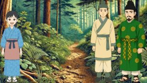 そして曾婆加里に「今日はここ山口に泊まり、まずおまえに大臣の位を授け、明日大和に上ることにしよう」と言って、ここに仮宮を作り、役人たちに礼拝をさせ、曽婆訶理はたいへん喜びました。