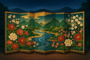 もしここで泊まるとわかっていたなら、夜風を防ぐ屏風を持って来たのに。