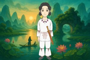 そのとき彼女は、「人は皆、自分の国の習わしで産みます。私は本来の姿に戻って出産します。どうか覗かないでください」と夫に頼みました。