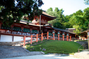 雄略天皇は、丸邇佐都紀臣(わにのさつきのおみ)の娘、春日の袁杼比売(をどひめ)を皇后とするため春日へ赴かれた折、道で袁杼比売と出会われました。