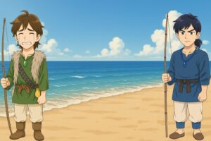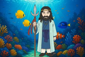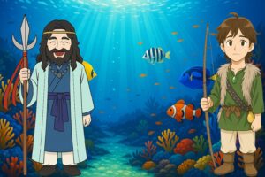 火遠理命は釣り道具を持って海へ出ましたが、一匹も釣れず、ついには釣り針を海に落としてしまいました。
