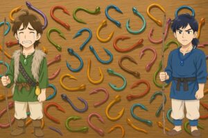 海佐知毘古は、海の幸を持つ男性という意味。「サチ」とは威力のことで、道具に宿っており、多くの「サチ」を持つ者の方が獲物が多いのです。海幸は、海のサチが宿っている釣針のこと。もちろん、山知毘古も同様です。