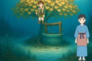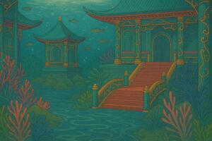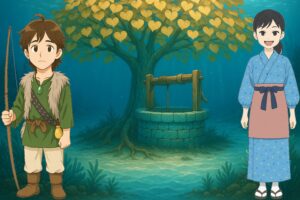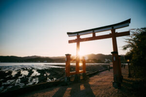 塩椎神は「流れの先に魚の鱗のように屋根が並ぶ宮殿があるだろう。それが海の神、綿津見神の宮です。門の傍の井戸の桂の木に登って待てば、海神の娘が見つけて取り計らってくれるでしょう」と教えてくれました。