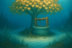 火遠理命は言われた通り桂の木に登り、やがて綿津見神の娘・豊玉比売の侍女が井戸に水を汲みに来ました。