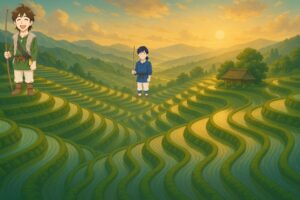 - その兄高田を作らば~汝が命は高田を營りたまへ(毎年土地を選定して耕作するので、水の多い年には高田を作るに利あり、水の無い年はその反対である)