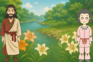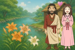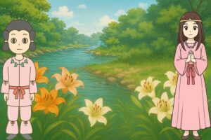 比売の家は佐韋河(さいがわ)のほとりにあり、河原には山百合が咲き誇っていました。山百合の元の名は佐韋と言います。