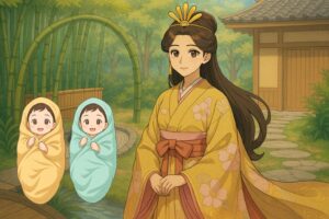 神武天皇は、最初に日向の国においでになった時、阿多之小椅君(あたのをばしのきみ)の妹・阿比良比売(あひらひめ)を妃とし、当芸志美美命(たぎしみみのみこと)と岐須美美命(きすみみのみこと)の二人の御子をもうけられました。
