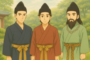 お二人の間には、日子八井命(ひこやいのみこと)・神八井耳命(かむやいみみのみこと)・のちの綏靖(すいぜい)天皇である神沼河耳命(かむぬなかはみみのみこと)の三柱の御子が生まれました。