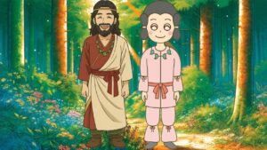 大久米命がその旨を伝えると、比売は不思議そうに彼の目尻の入れ墨を見て、「つばめ、セキレイ、千鳥、ホオジロかしら?どうしてそんなに大きくて鋭い目なの?」と歌いました。