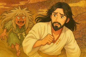 伊邪那岐命はその実を三つ取って投げつけると、雷神や鬼たちは恐れて逃げ去りました。