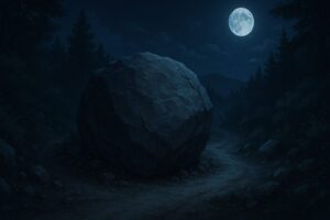 それでもなお伊邪那美命は自ら追ってきました。伊邪那岐命は大きな岩、千引の岩を引き寄せ、坂の口をふさいでしまいました。